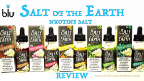 A review of the Salt of the Earth nicotine salt e-liquid line by blu. Designed for adult smokers and vapers who use refillable pod style devices. They are available in 30 milliliter bottles in 24 or 48 milligrams of nicotine.