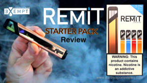 An unboxing, how-to and review of the Remit Starter Kit by Exempt. The Remit Pod System is a 350 mah buttonless e-cig coupled with 1.2 milliliter pre-filled e-liquid pods in 30 milligrams of nicotine.