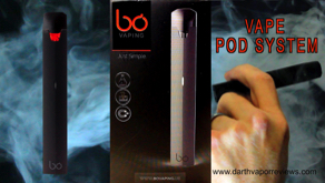 A review of BO Vape Starter Kit Review. The BO pod vaping system is a perfect way to quit smoking cigarettes. It features an automatic draw and comes with pre-filled nicotine salts in 1.5ml e-liquid pods at 3.5% nicotine.